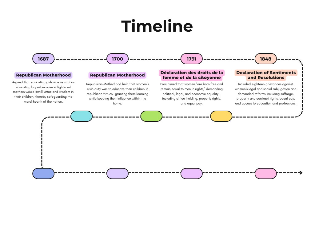Across these texts and ideas, we are able to draw connections on ideas of feminism and equality. While these nations happened to be an ocean away, the concepts and discussions they inspired were remarkably similar. Women around the world, no matter where they lived, desired equality in all aspects of life, from the social and political arenas to economic independence. This universal longing for justice and recognition was not just a distant echo; it reverberated through time and across cultures, igniting movements that would challenge oppressive norms. A variation of this would soon come in the following centuries, as the foundation laid by early advocates would evolve into more organized movements, addressing the complexities of intersectionality, and bringing forth a more nuanced understanding of what true equality entailed in varying contexts.